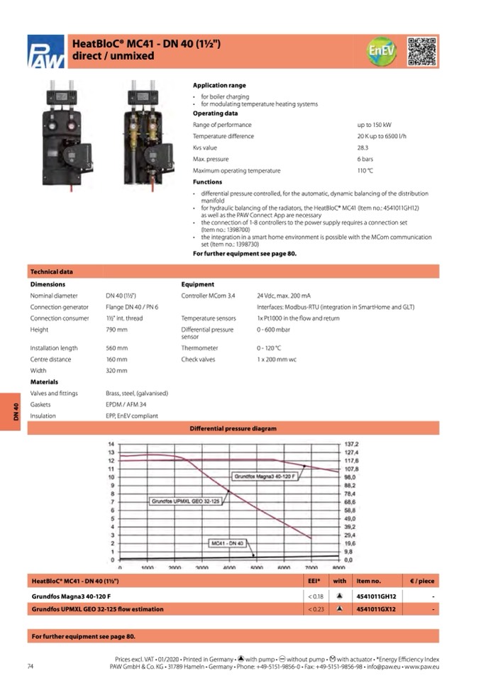 • for hydraulic balancing of the radiators, the HeatBloC® MC41 (Item no.: 4541011GH12)