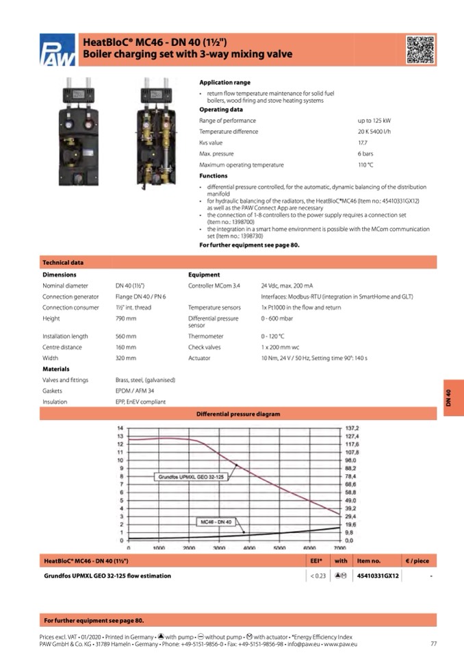 • for hydraulic balancing of the radiators, the HeatBloC®MC46 (Item no.: 45410331GX12)