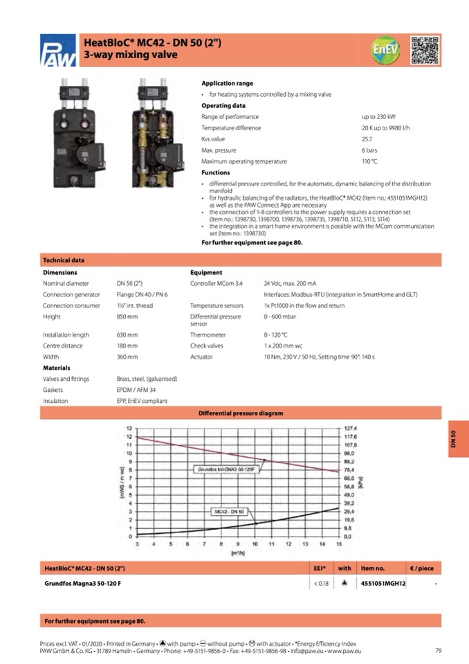 • for hydraulic balancing of the radiators, the HeatBloC® MC42 (Item no.: 4551051MGH12)