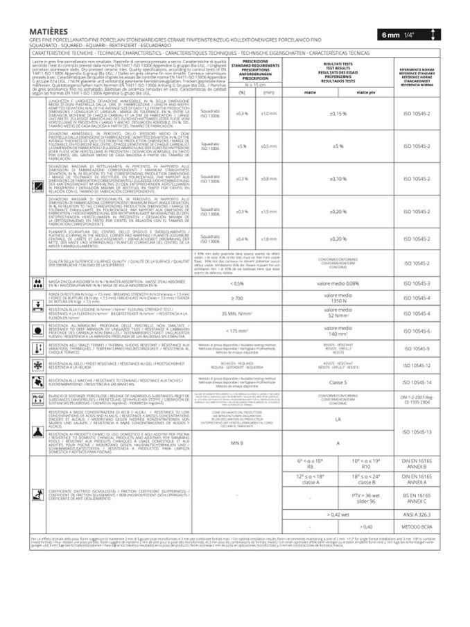 és à sec. Caractéristiques de qualité d’aprés les essais de contrôle norme EN 14411-ISO 13006 Appendic