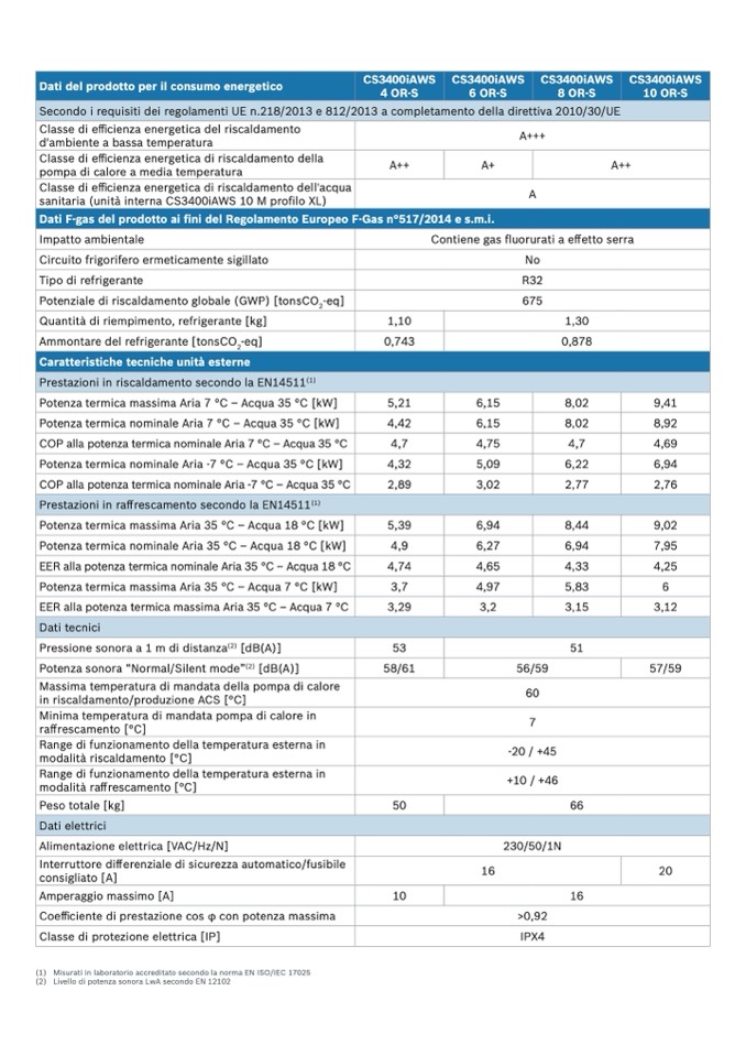 (1) Misurati in laboratorio accreditato secondo la norma EN ISO/IEC 17025