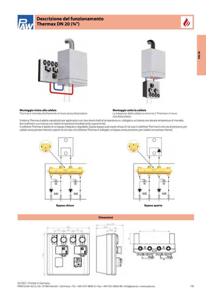 caldaie senza pompe interne) o aperto (in tal caso, nel collettore Thermax è collegato un bypass senza pressione, per caldaie con pompa interna).