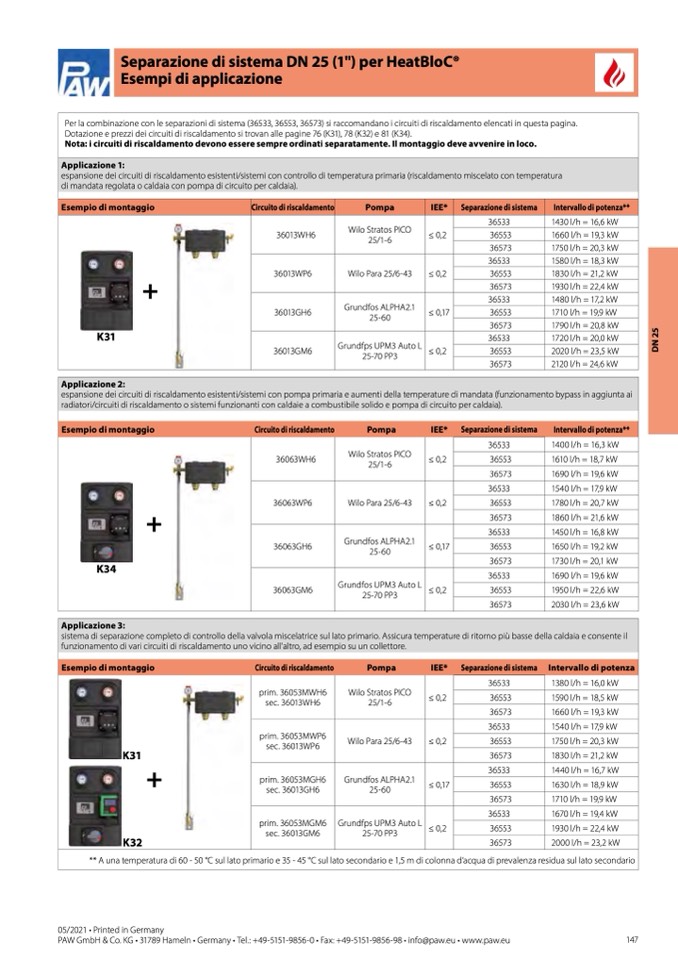 Dotazione e prezzi dei circuiti di riscaldamento si trovan alle pagine 76 (K31), 78 (K32) e 81 (K34).
