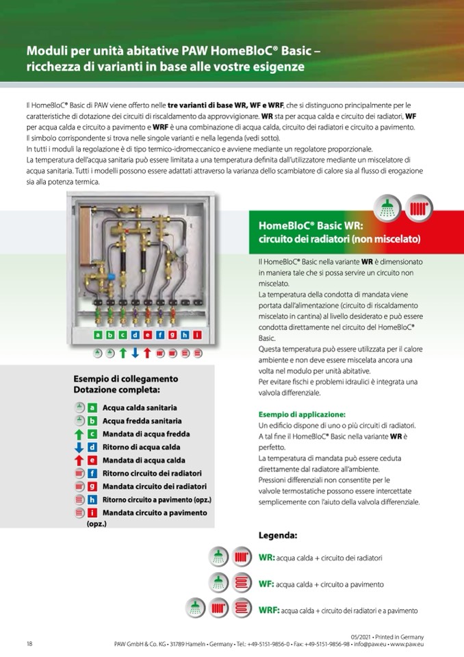 caratteristiche di dotazione dei circuiti di riscaldamento da approvvigionare. WR sta per acqua calda e circuito dei radiatori, WF