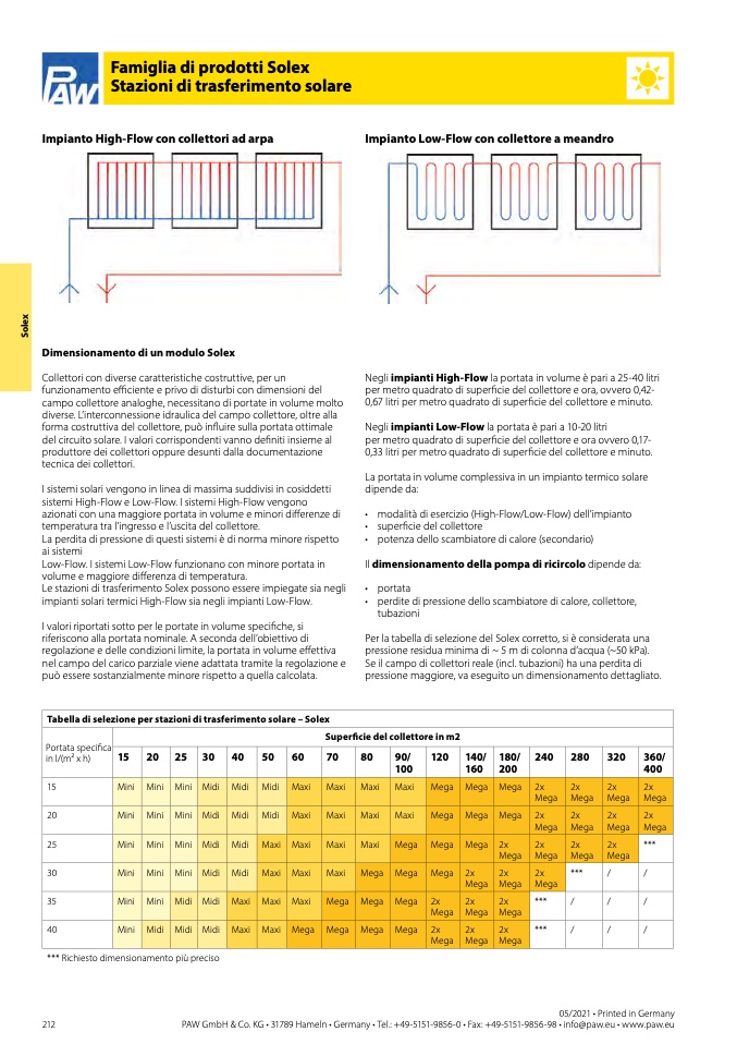 Tabella di selezione per stazioni di trasferimento solare – Solex
