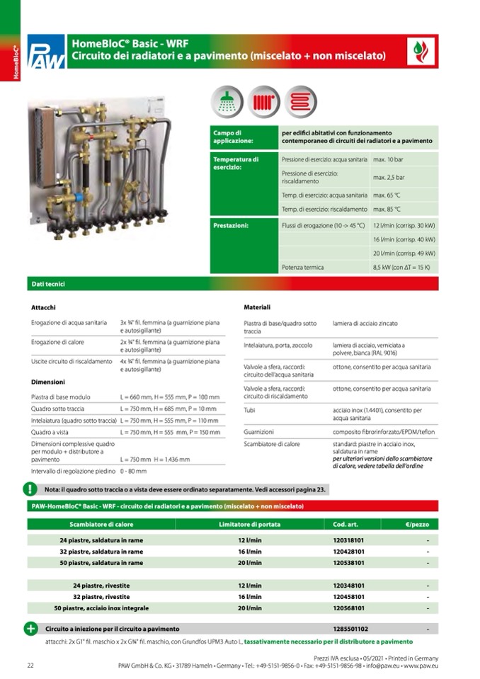 PAW-HomeBloC® Basic - WRF - circuito dei radiatori e a pavimento (miscelato + non miscelato)