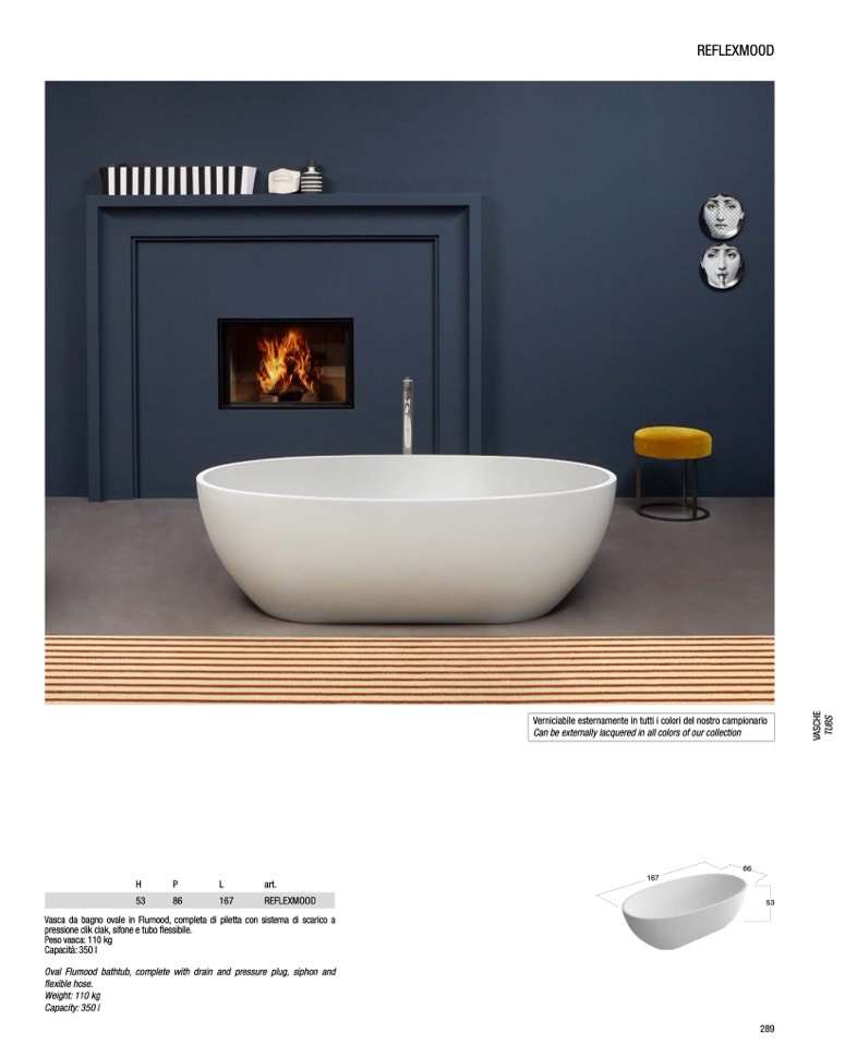 Vasca da bagno ovale in Flumood, completa di piletta con sistema di scarico a