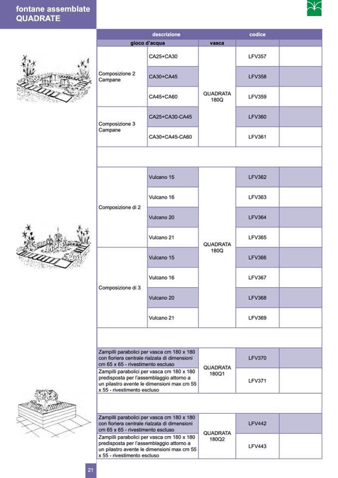 Zampilli parabolici per vasca cm 180 x 180