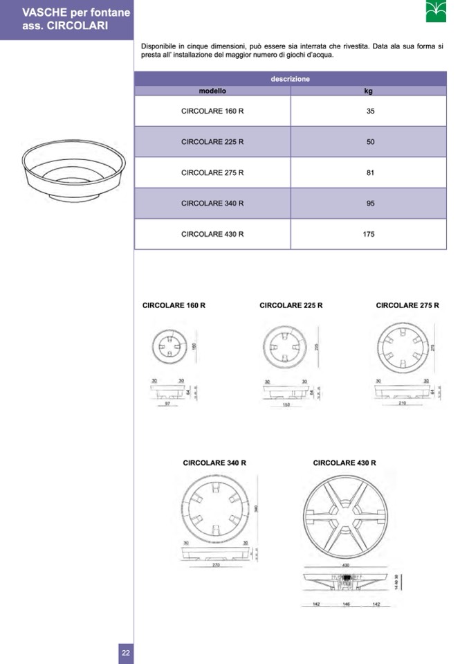 Disponibile in cinque dimensioni, può essere sia interrata che rivestita. Data ala sua forma si
