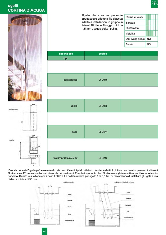 namento. Questo lo si ottiene con il peso LFU211. La portata minima per ugello è di 0,5 I/m. Si raccomanda di installare gli ugelli a una