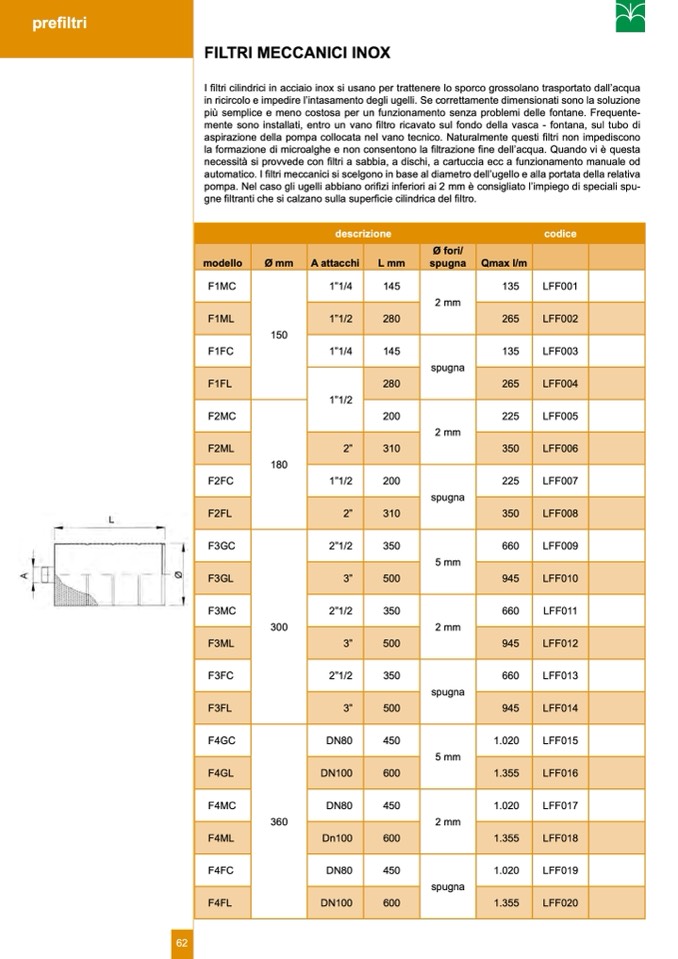 I filtri cilindrici in acciaio inox si usano per trattenere lo sporco grossolano trasportato dall’acqua