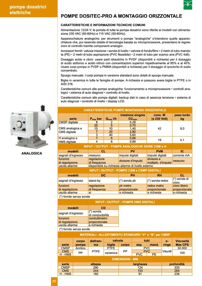 Caratteristiche comuni alle pompe analogiche: funzionamento a microprocessore • controlli ana-