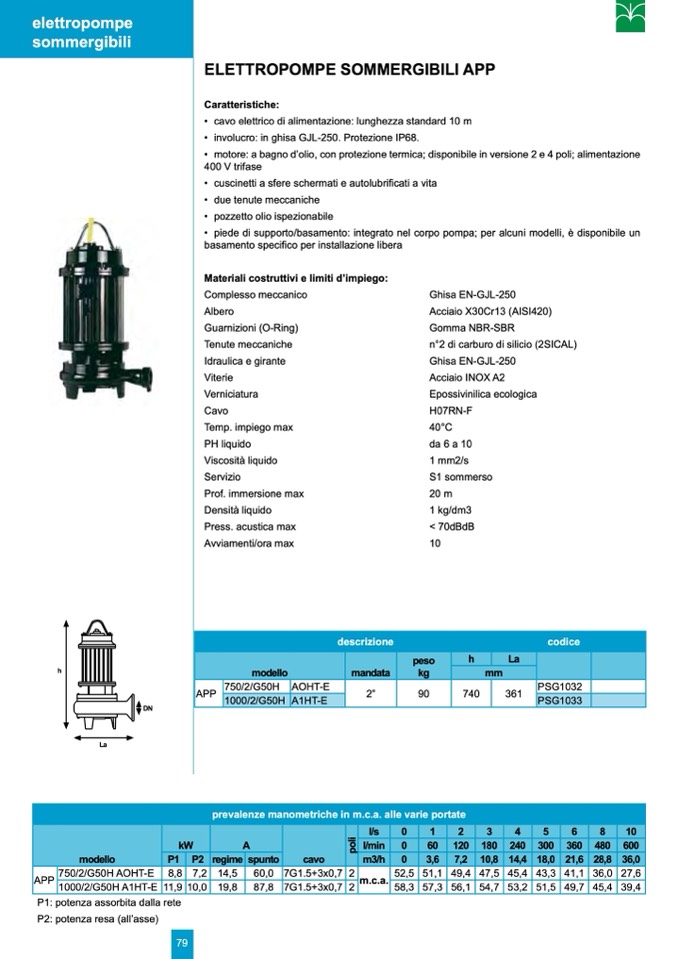 • involucro: in ghisa GJL-250. Protezione IP68.