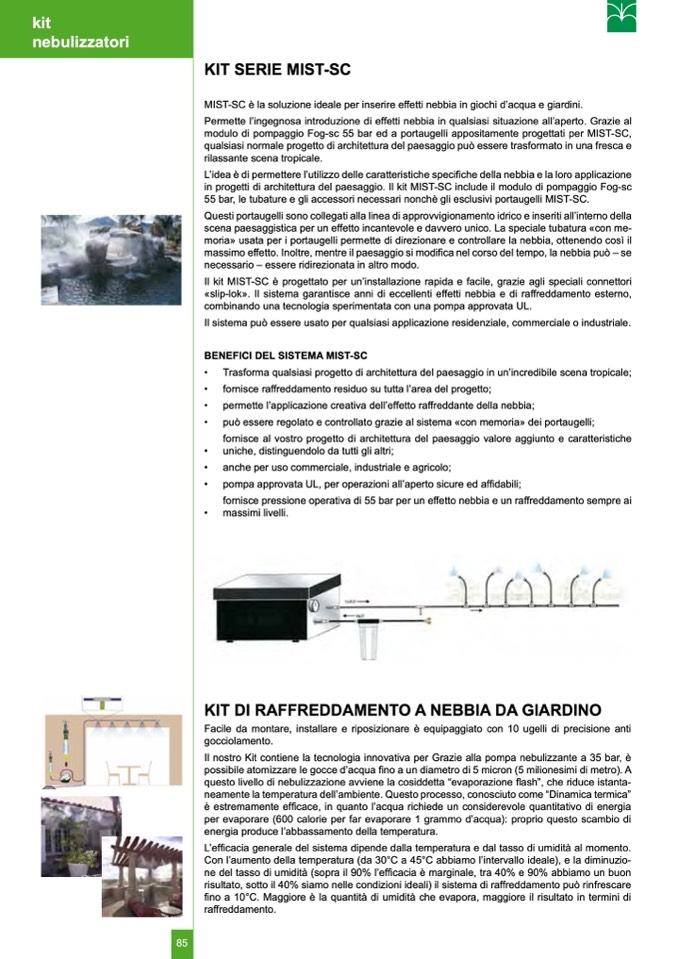 in progetti di architettura del paesaggio. Il kit MIST-SC include il modulo di pompaggio Fog-sc