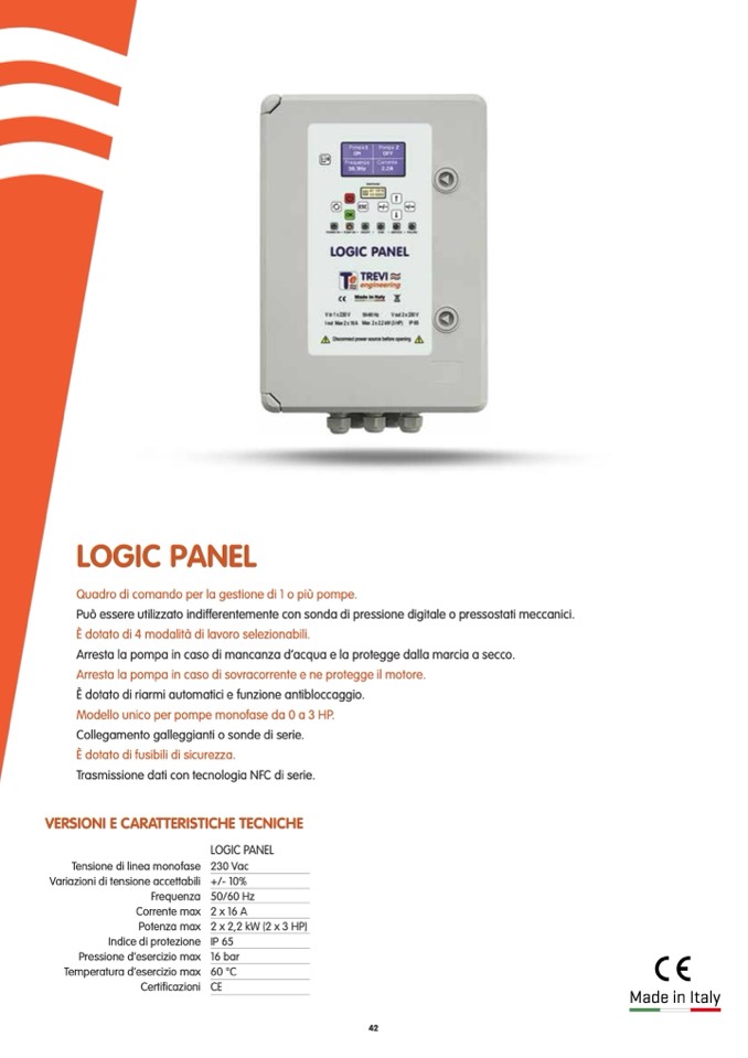 Modello unico per pompe monofase da 0 a 3 HP.