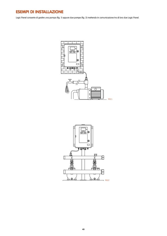 Logic Panel consente di gestire una pompa (fig. 1) oppure due pompe (fig. 2) mettendo in comunicazione tra di loro due Logic Panel.