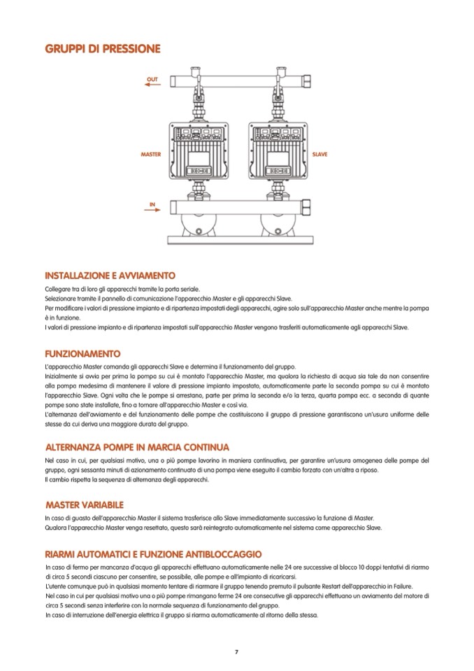 Inizialmente si avvia per prima la pompa su cui è montato l’apparecchio Master, ma qualora la richiesta di acqua sia tale da non consentire