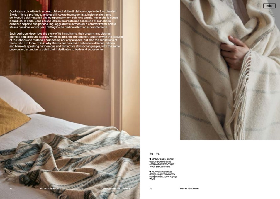 those who live there. This is why Bolzan has created a collection of linens, pillows