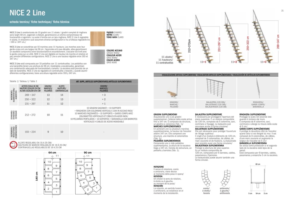 funzionalità e ingombro. La scala è fornita con un lato ringhiera. NICE 2 Line è regolabile