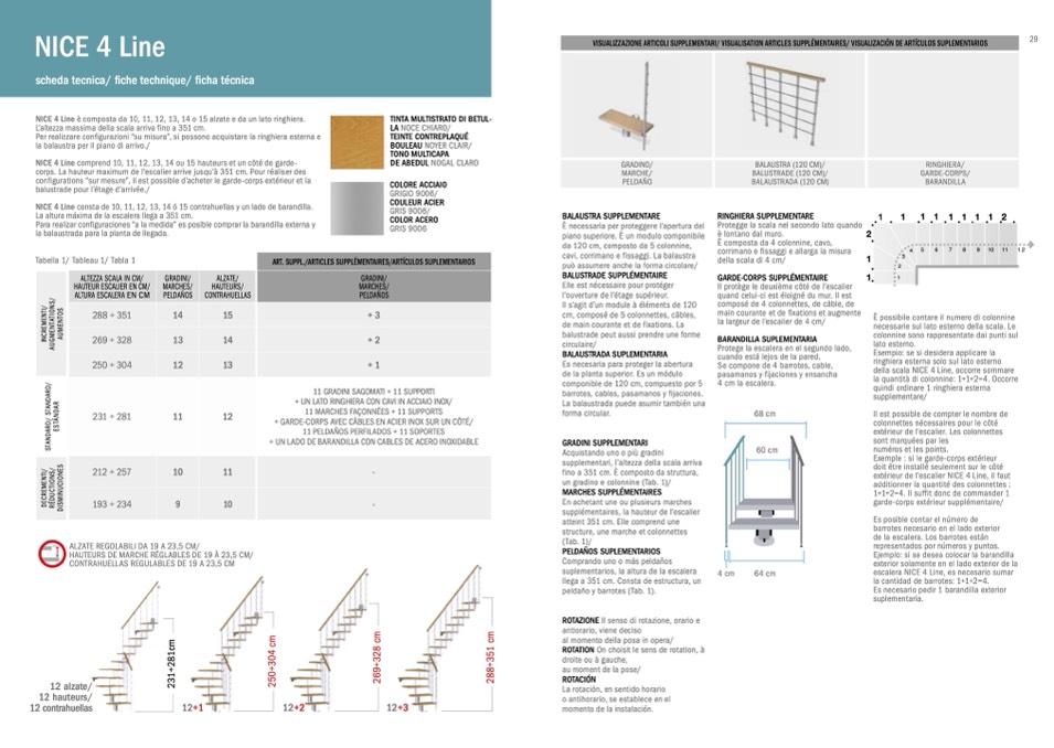 NICE 4 Line è composta da 10, 11, 12, 13, 14 o 15 alzate e da un lato ringhiera.