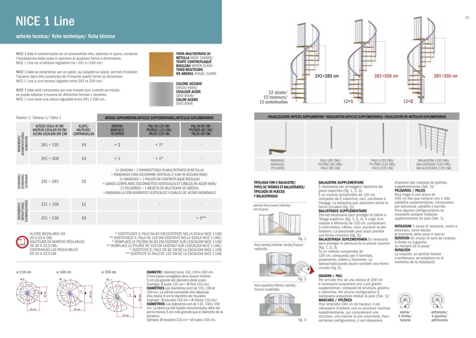 Ejemplo: Ø escalera 110 cm = Ø hueco 115 cm.