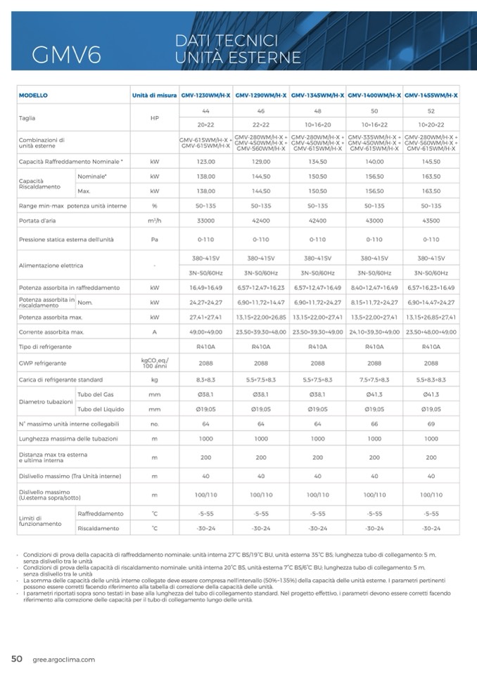 • La somma delle capacità delle unità interne collegate deve essere compresa nell’intervallo (50%~135%) della capacità delle unità esterne. I parametri pertinenti