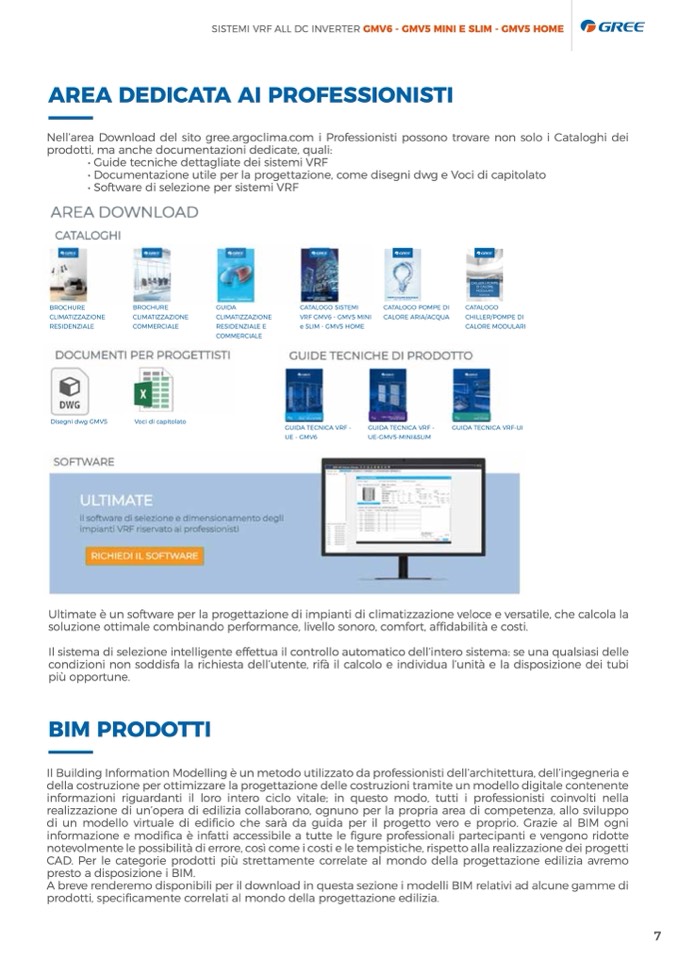 Nell’area Download del sito gree.argoclima.com i Professionisti possono trovare non solo i Cataloghi dei