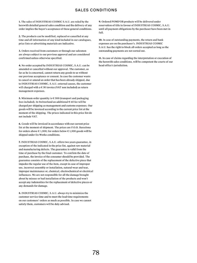 1. The sales of INDUSTRIAS COSMIC S.A.U. are ruled by the