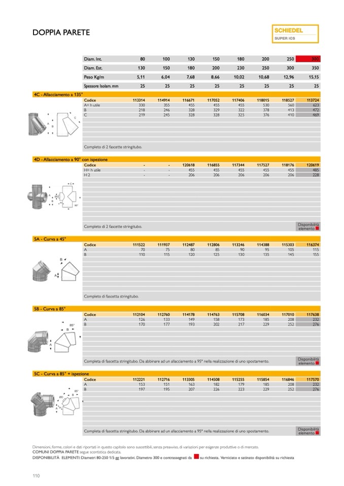 DISPONIBILITÀ ELEMENTI: Diametri 80-250 1/5 gg lavorativi. Diametro 300 e contrassegnati da