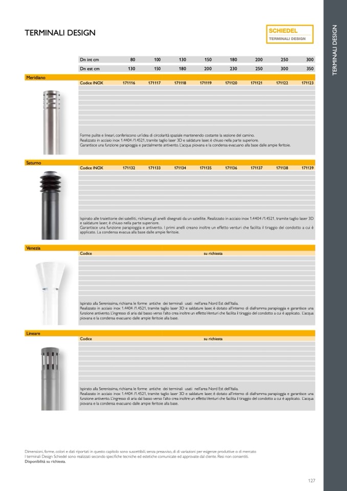 I terminali Design Schiedel sono realizzati secondo specifiche tecniche ed estetiche comunicate ed approvate dal cliente. Resi non consentiti.
