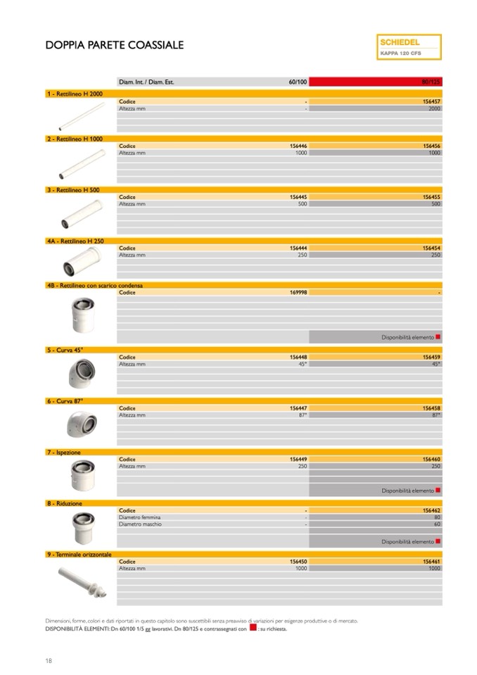 DISPONIBILITÀ ELEMENTI: Dn 60/100 1/5 gg lavorativi. Dn 80/125 e contrassegnati con