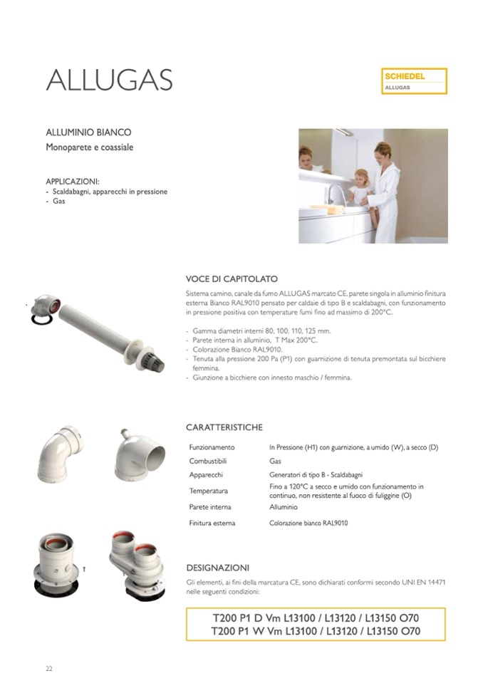 Sistema camino, canale da fumo ALLUGAS marcato CE, parete singola in alluminio finitura