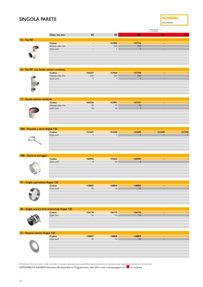 DISPONIBILITÀ ELEMENTI: Diametro 80 disponibile in 1/5 gg lavorativi. Altri DN e tutti i contrassegnati con