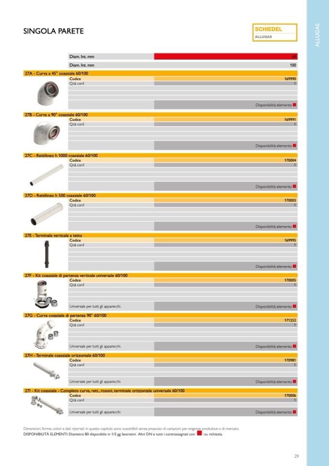 DISPONIBILITÀ ELEMENTI: Diametro 80 disponibile in 1/5 gg lavorativi. Altri DN e tutti i contrassegnati con
