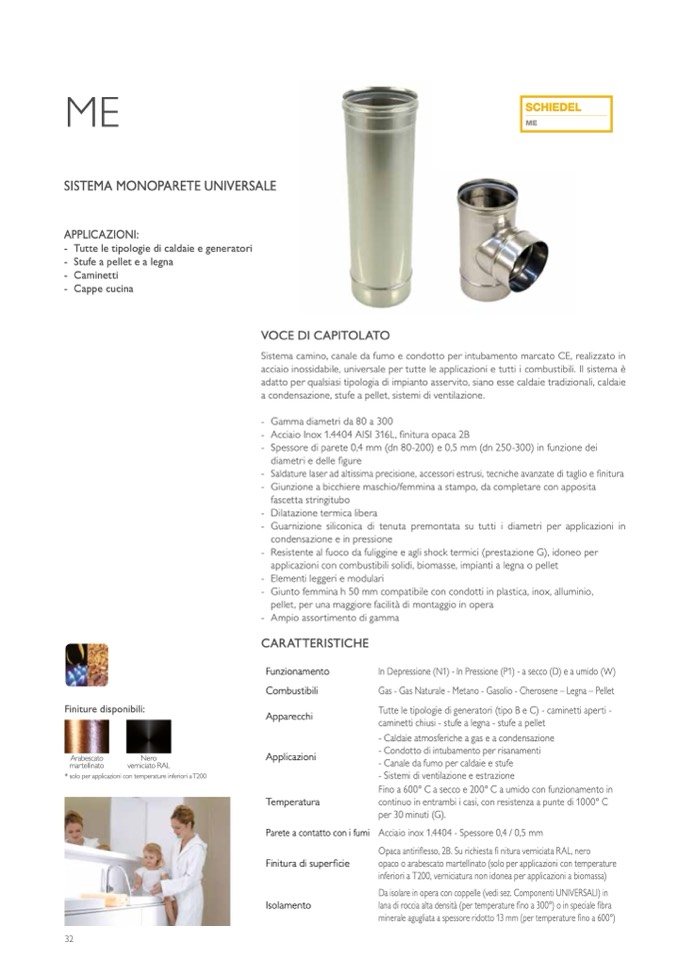 acciaio inossidabile, universale per tutte le applicazioni e tutti i combustibili. Il sistema è