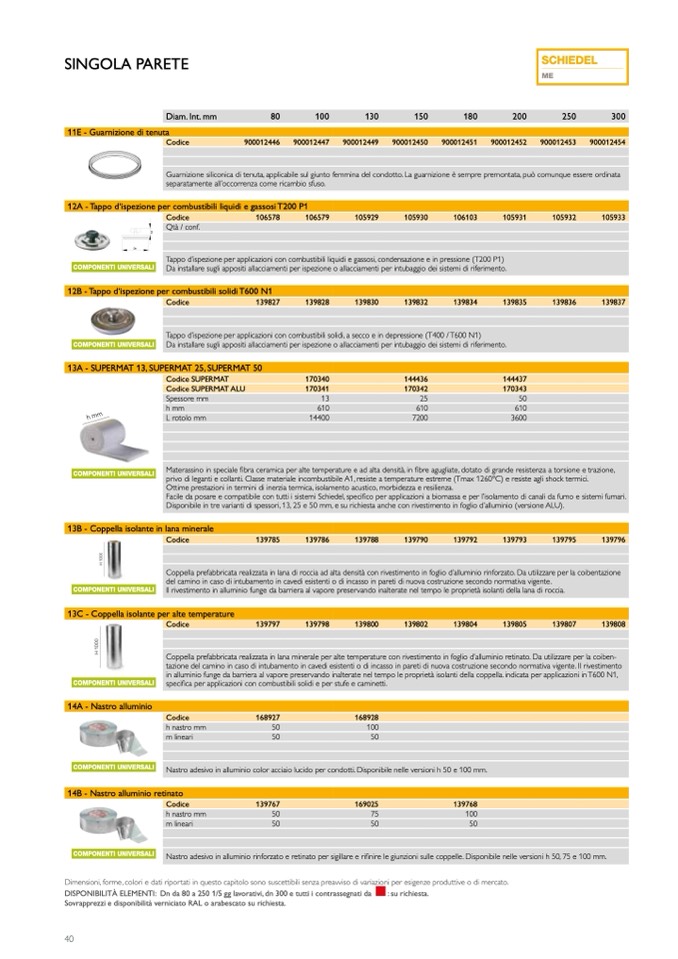 DISPONIBILITÀ ELEMENTI: Dn da 80 a 250 1/5 gg lavorativi, dn 300 e tutti i contrassegnati da