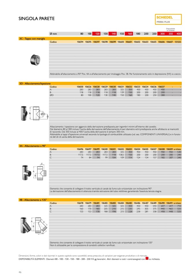 DISPONIBILITÀ ELEMENTI: Diametri 80 - 100 - 130 - 150 - 180 - 200 - 250 1/5 gg lavorativi. Altri diametri e tutti i contrassegnati con