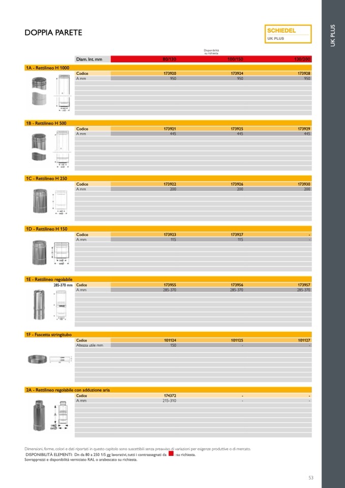 DISPONIBILITÀ ELEMENTI: Dn da 80 a 250 1/5 gg lavorativi, tutti i contrassegnati da