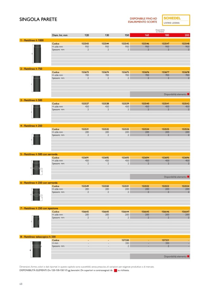 DISPONIBILITÀ ELEMENTI: Dn 120-130-150 1/5 gg lavorativi. Dn superiori e contrassegnati da