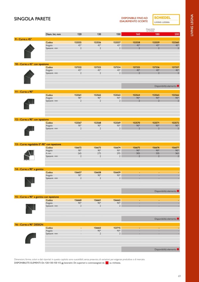 DISPONIBILITÀ ELEMENTI: Dn 120-130-150 1/5 gg lavorativi. Dn superiori e contrassegnati da
