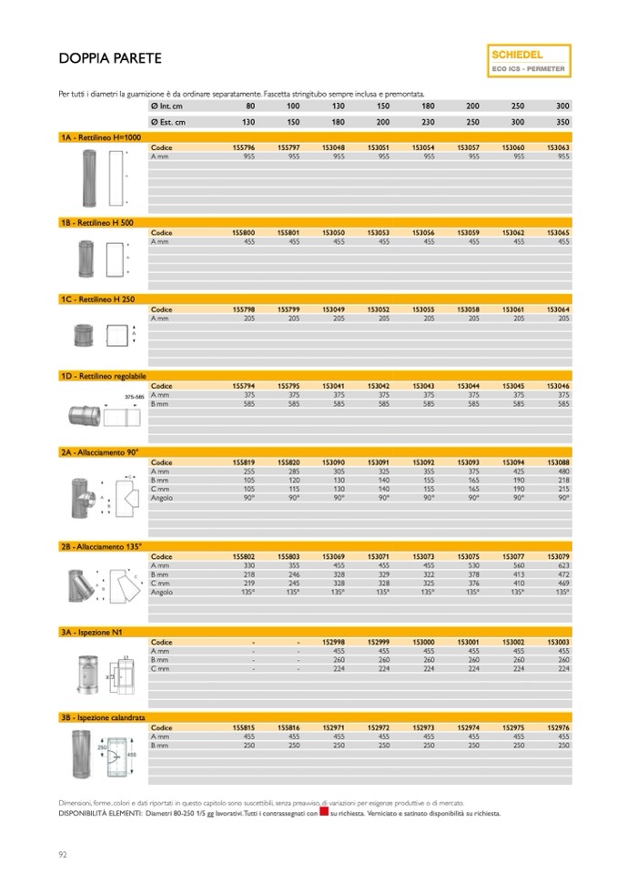 DISPONIBILITÀ ELEMENTI: Diametri 80-250 1/5 gg lavorativi.Tutti i contrassegnati con