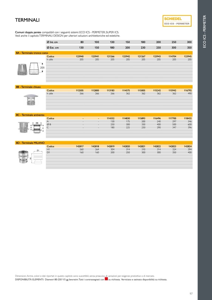 DISPONIBILITÀ ELEMENTI: Diametri 80-250 1/5 gg lavorativi.Tutti i contrassegnati con