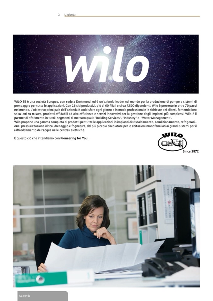 pompaggio per tutte le applicazioni. Con 16 siti produttivi, più di 60 filiali e circa 7.500 dipendenti, Wilo è presente in oltre 70 paesi