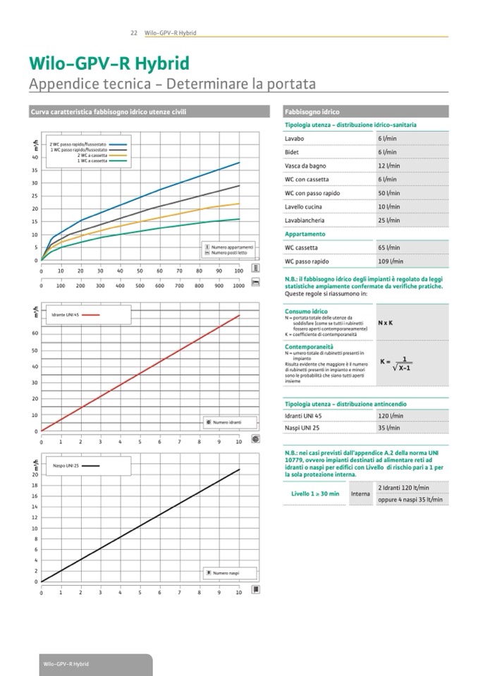 N.B.: il fabbisogno idrico degli impianti è regolato da leggi