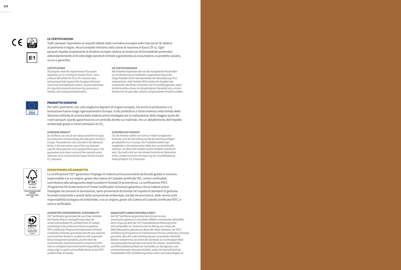 Tutti i parquet rispondono ai requisiti dettati dalla normativa europea sulla marcatura CE relativa