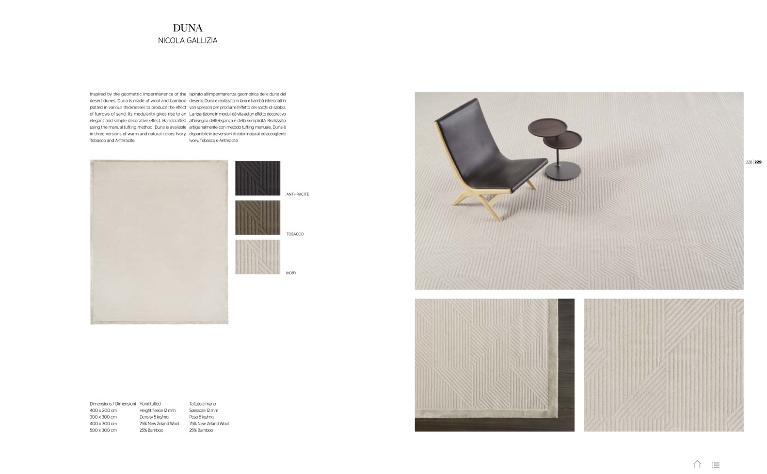artigianalmente con metodo tufting manuale, Duna è