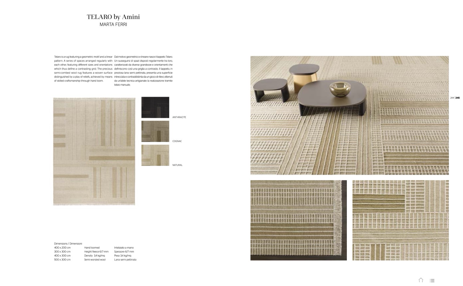 Dal motivo geometrico e lineare nasce il tappeto Telaro.