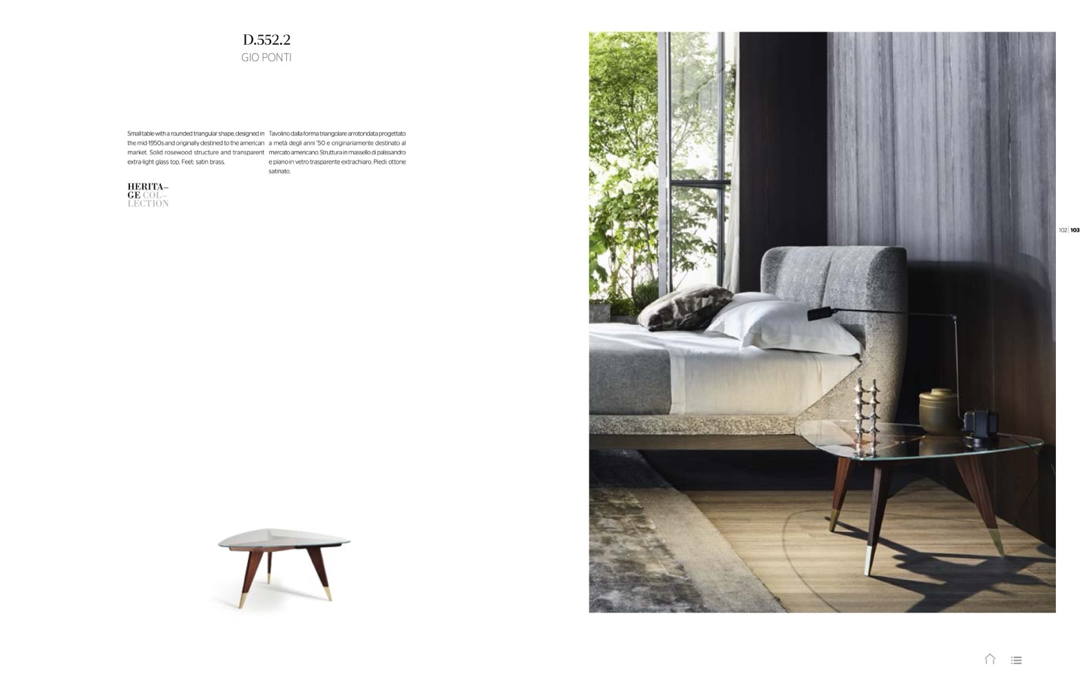 extra-light glass top. Feet: satin brass.