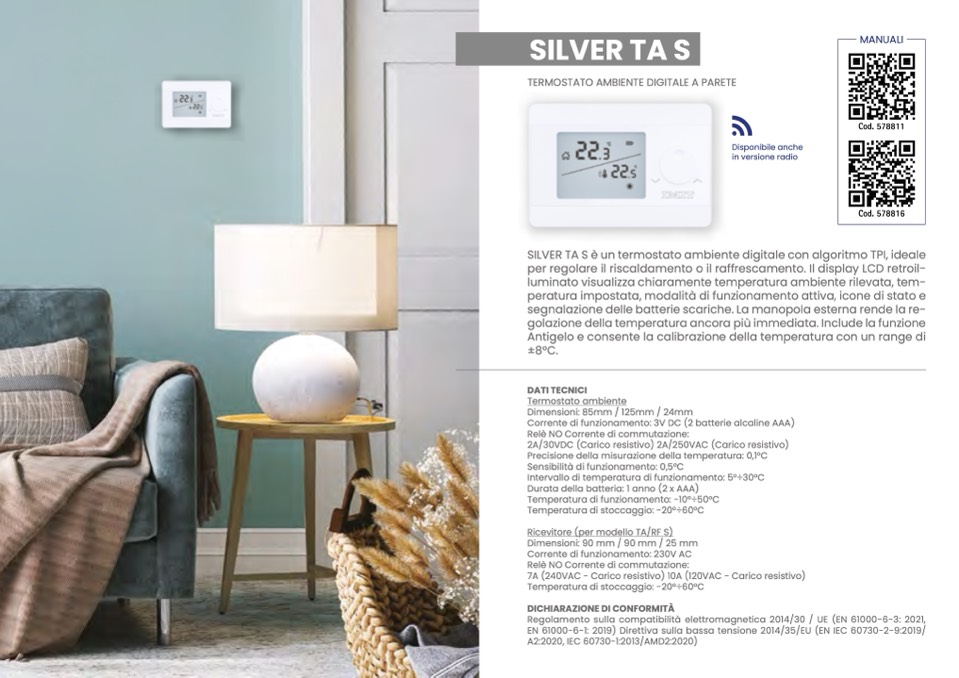 SILVER TA S è un termostato ambiente digitale con algoritmo TPI, ideale