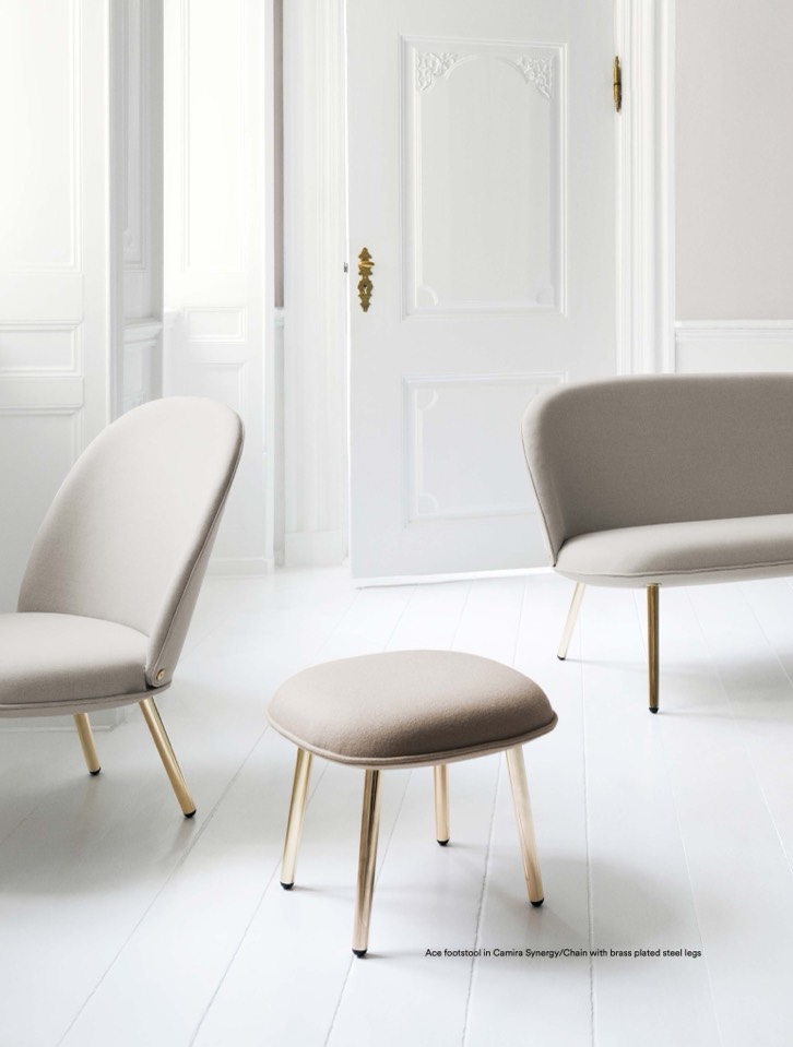 Ace footstool in Camira Synergy/Chain with brass plated steel legs